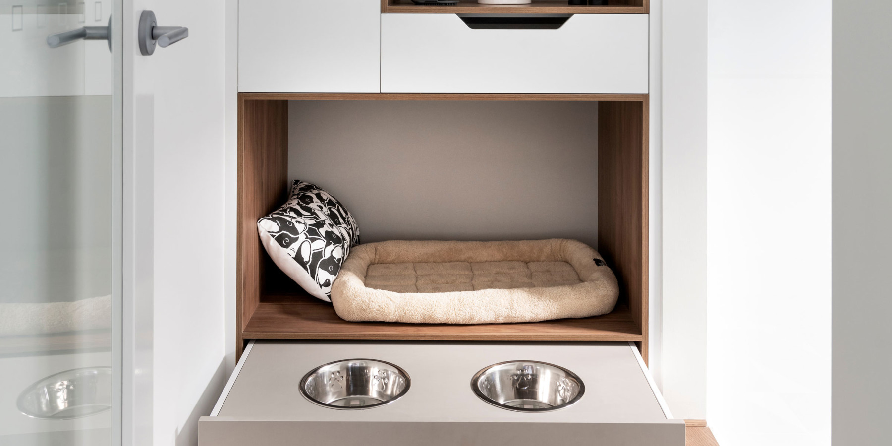 “The Palm Springs pet zone was designed to make the most of the space,” he said. “There is a dedicated space for a pet which will create a more organised area and hide clutter. Located in the laundry, it is the perfect spot for cleaning and washing your dog with direct access to the outside.”