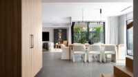 As you walk through the home, the spaces are immediately enhanced by layers of textures and subtle tones—timber, concrete and masonry—fostering a sense of comfort and warmth exploring the architectural interpretation of Gentle Brutalism.