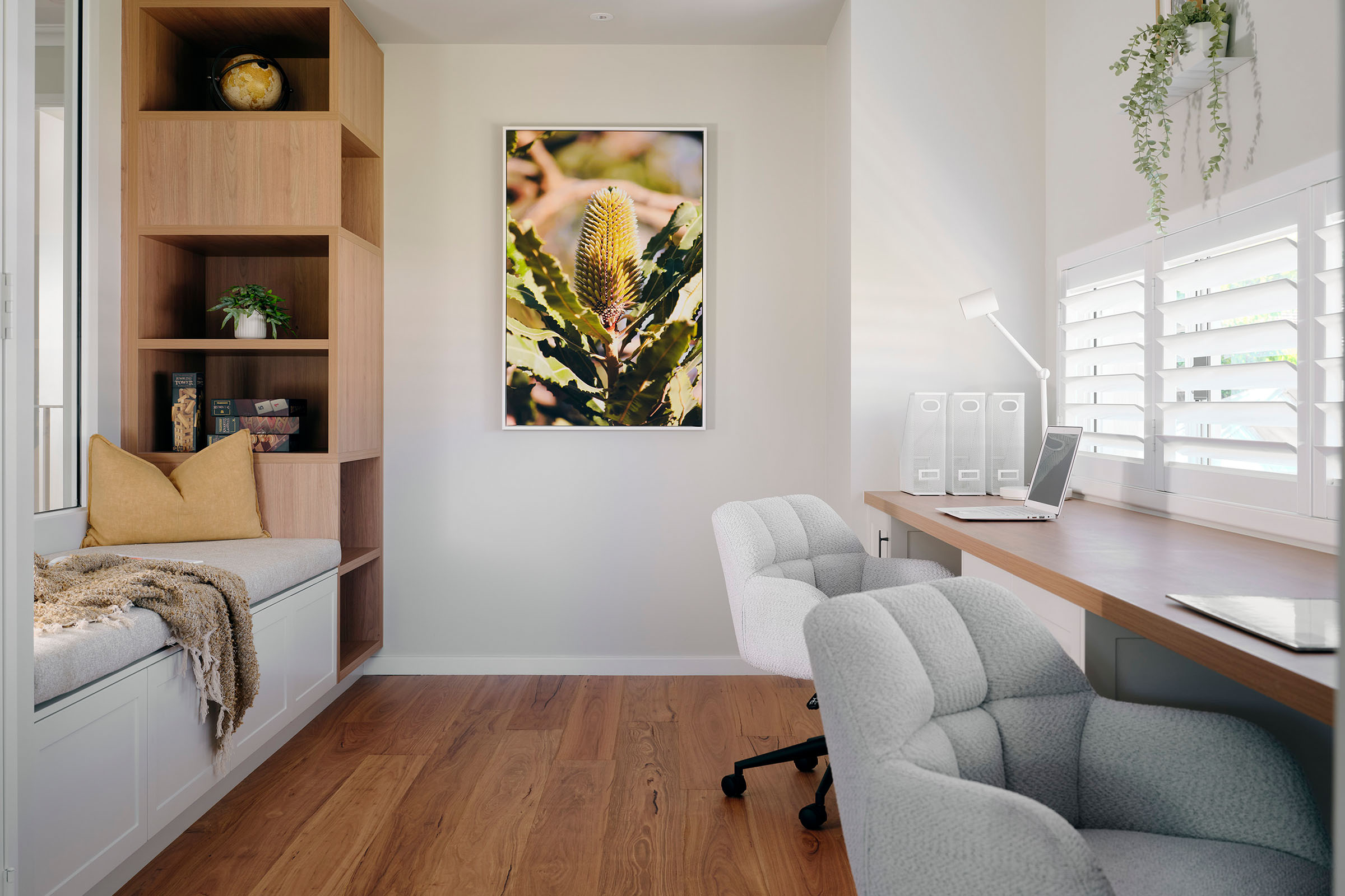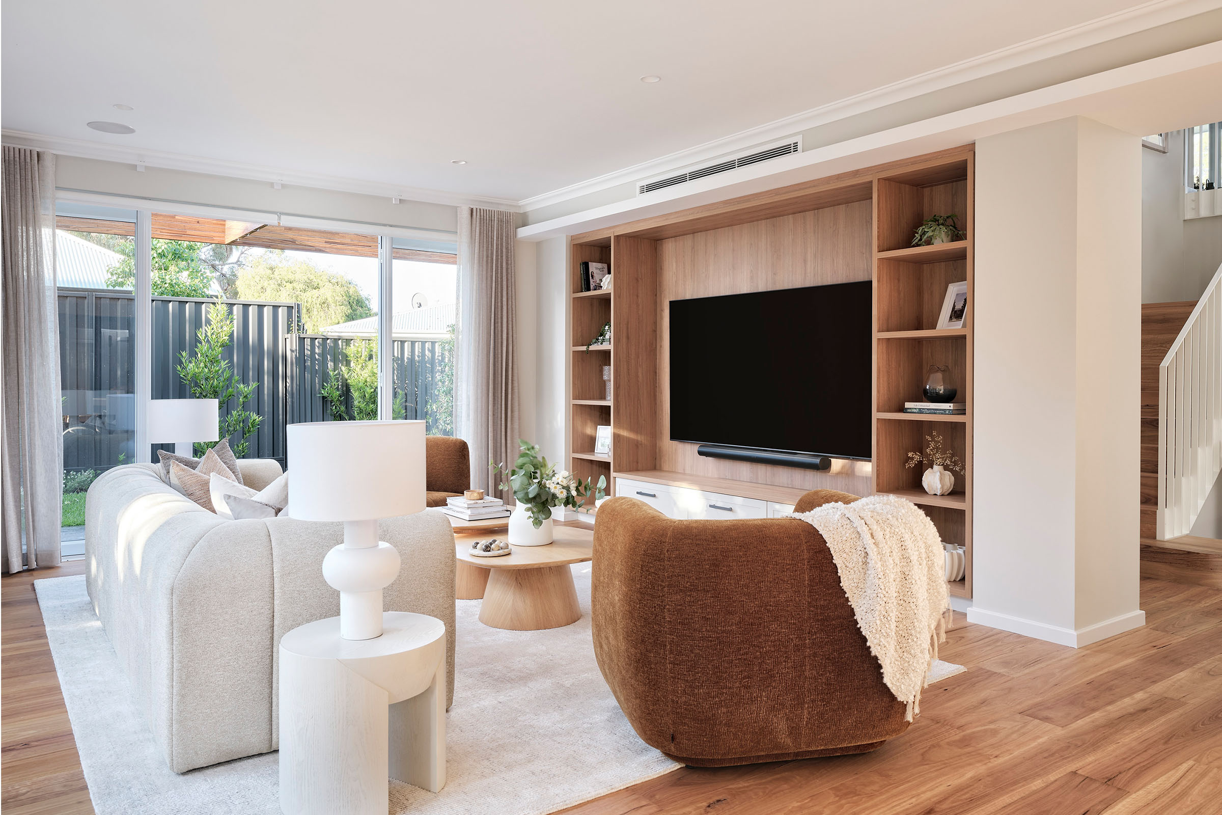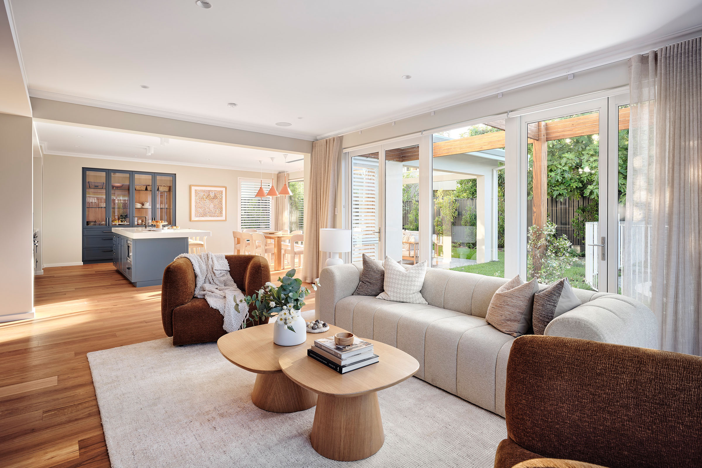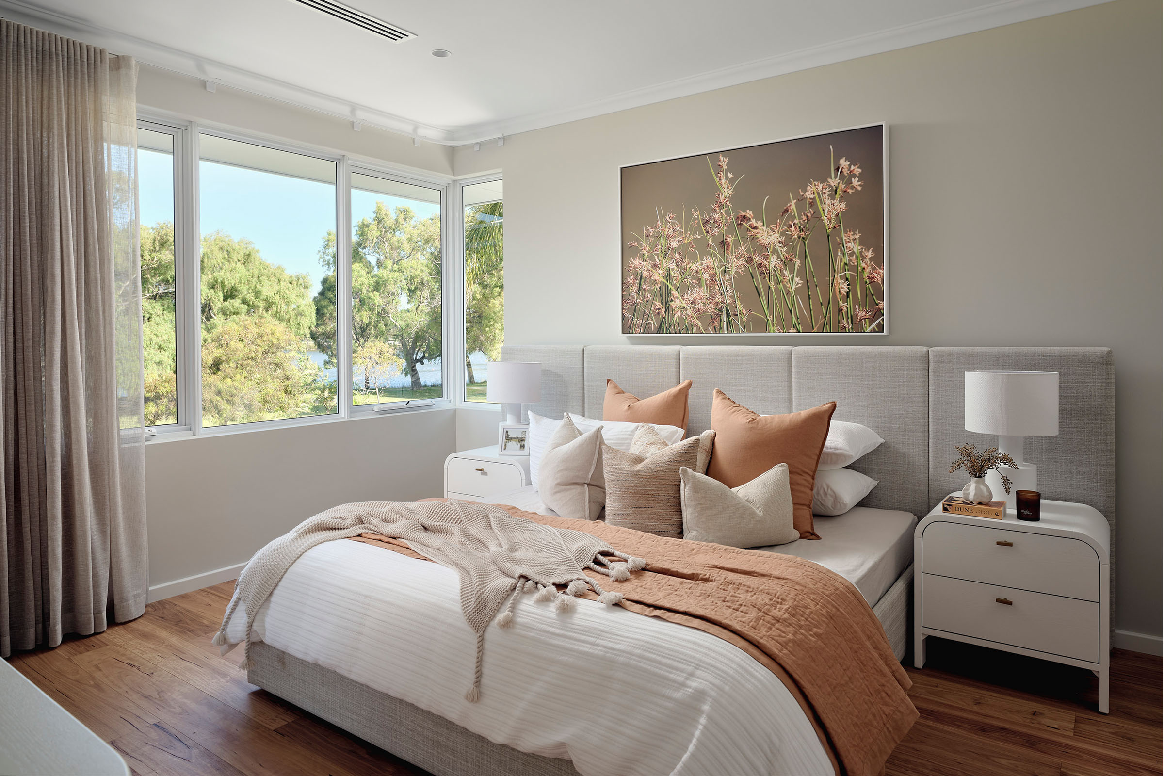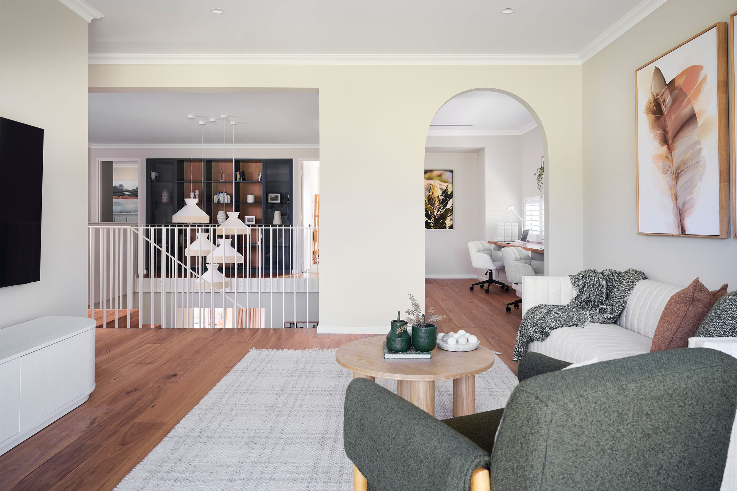 Inspired by the picturesque Jackadder Lake, this home captures the essence of a holiday retreat within a residential setting. It seamlessly blends traditional and modern design elements, incorporating soft curves and natural materials to create a warm and inviting atmosphere.
