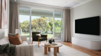 The upper level features a thoughtfully designed layout, including a spacious primary bedroom, complete with an ensuite and balcony access overlooking the lake, two additional ensuite bedrooms, and multiple living zones – providing ample space for rest and relaxation