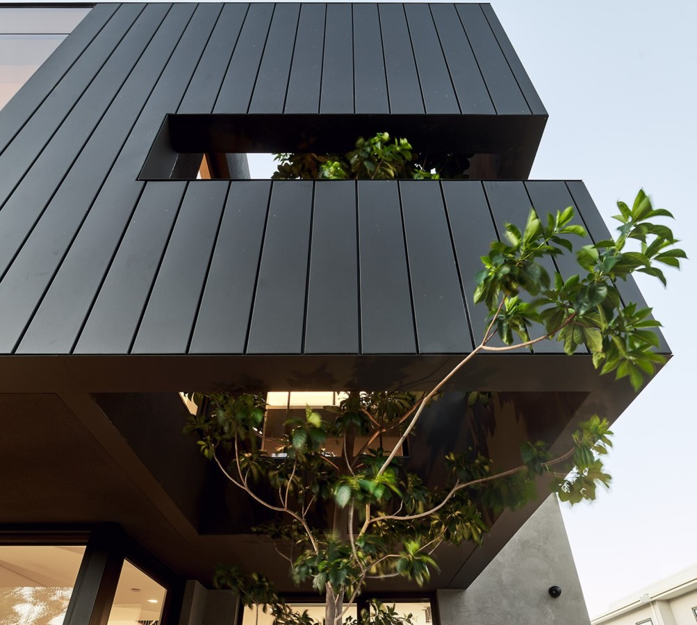 Taking inspiration from the angular forms of the High Line in New York, the display home’s rooftop garden features prefabricated concrete blocks, creating a garden bed on top of a concrete slab.