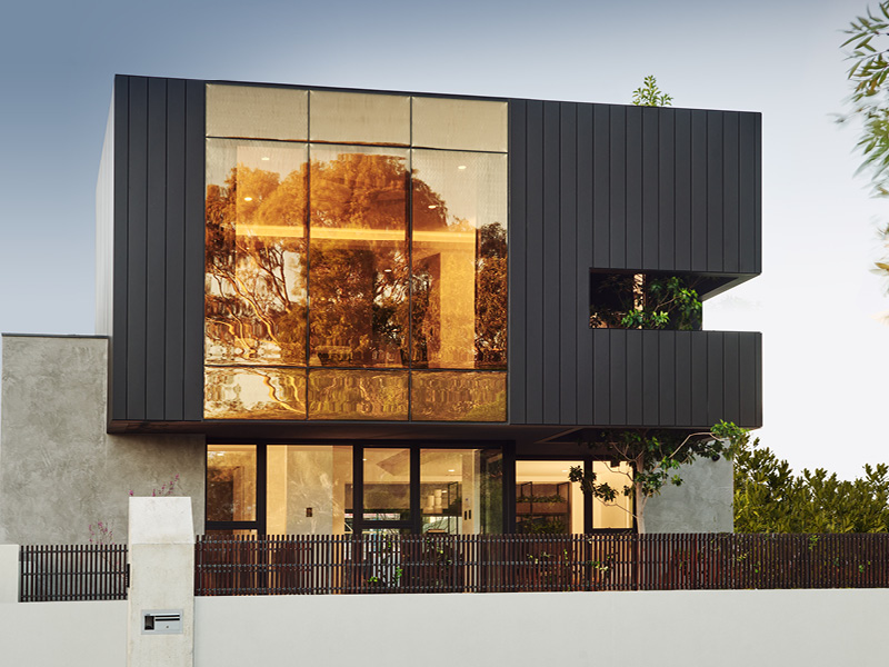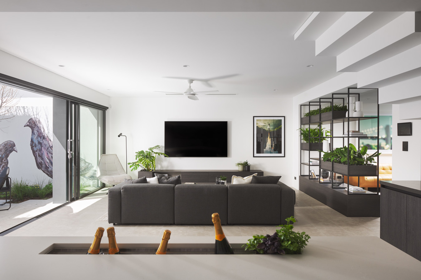 “The Highline’s open plan design encourages entertaining. The oversized commercial stacker doors extend the kitchen, dining and living to a central courtyard surrounded by lush gardens.”