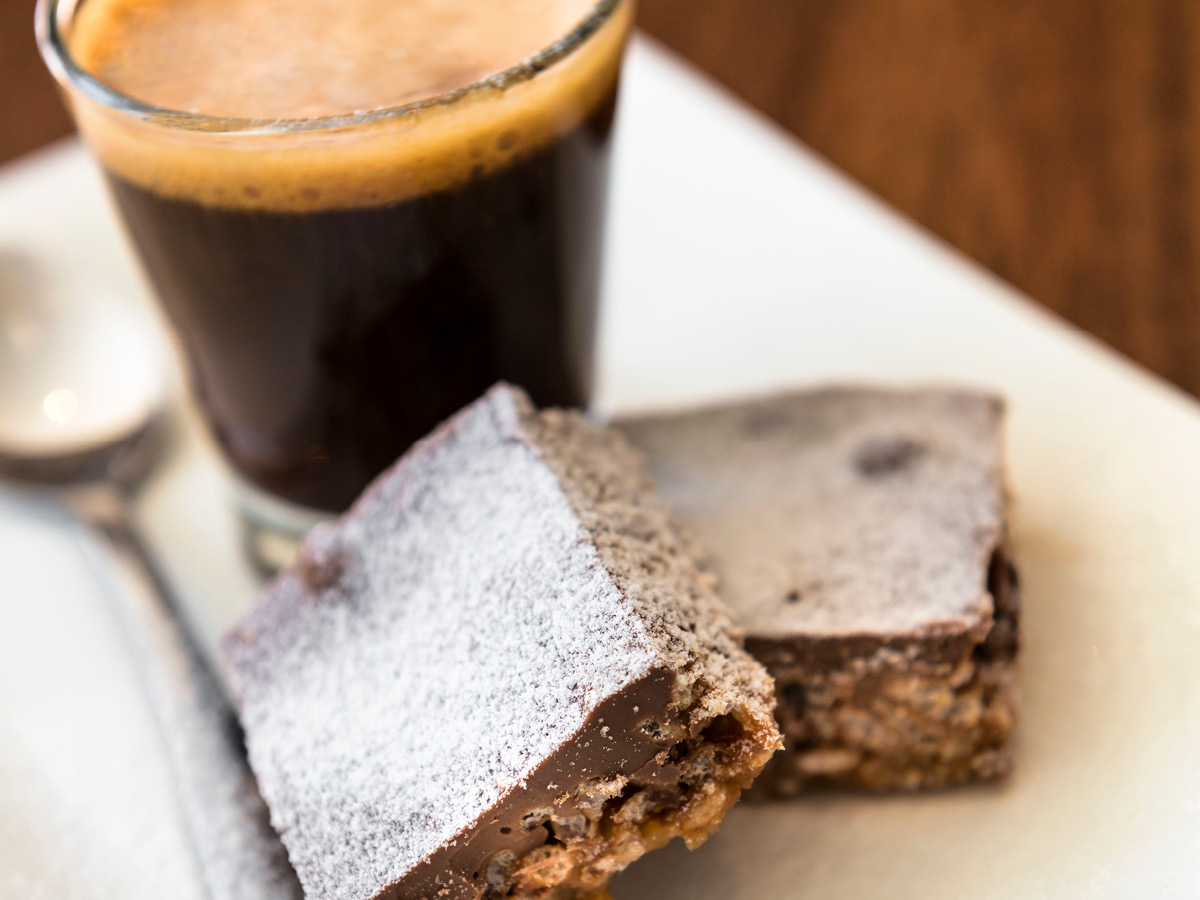 Place in the fridge and allow to set. This will take approximately 30 minutes. When set, remove from the fridge and cut into squares to serve.
