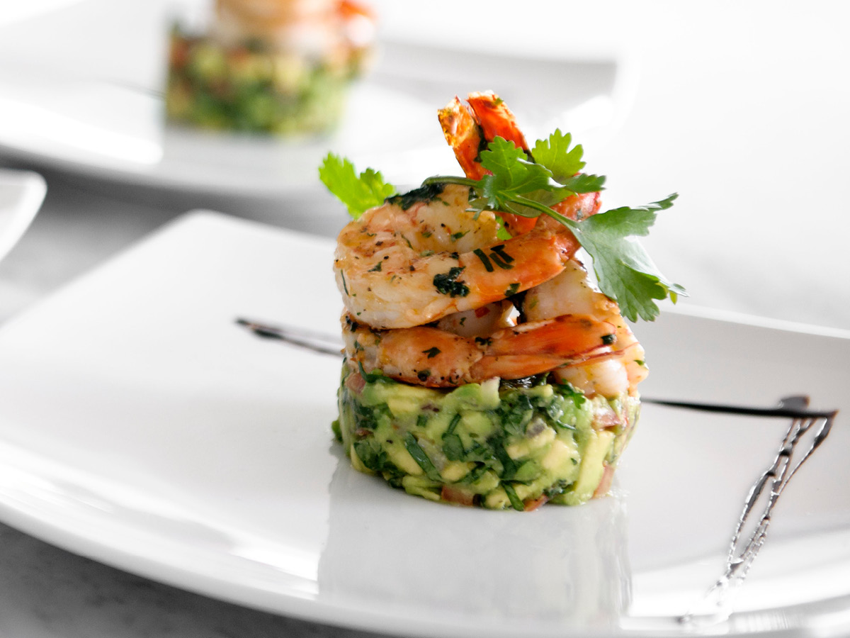 Arrange the cooked prawns on top of the avocado salsa and simply garnish with a sprig of coriander and a drizzle of your favourite balsamic glaze.