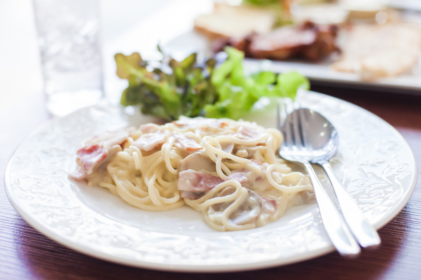Add pasta, cream and cheese to pan. Stir through sauce and pasta water until heated through. Season with salt and pepper.